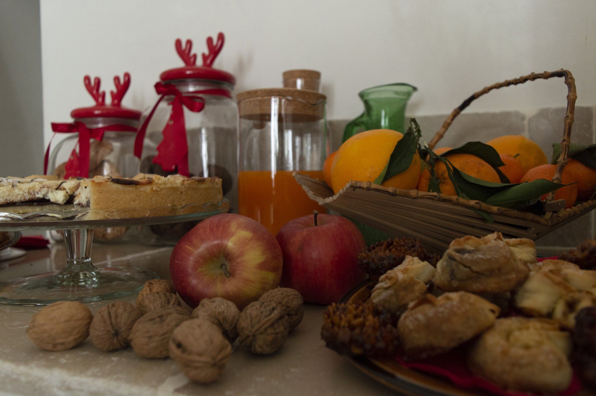 Calde crostate, marmellate fatte in casa, frutta stagionale.